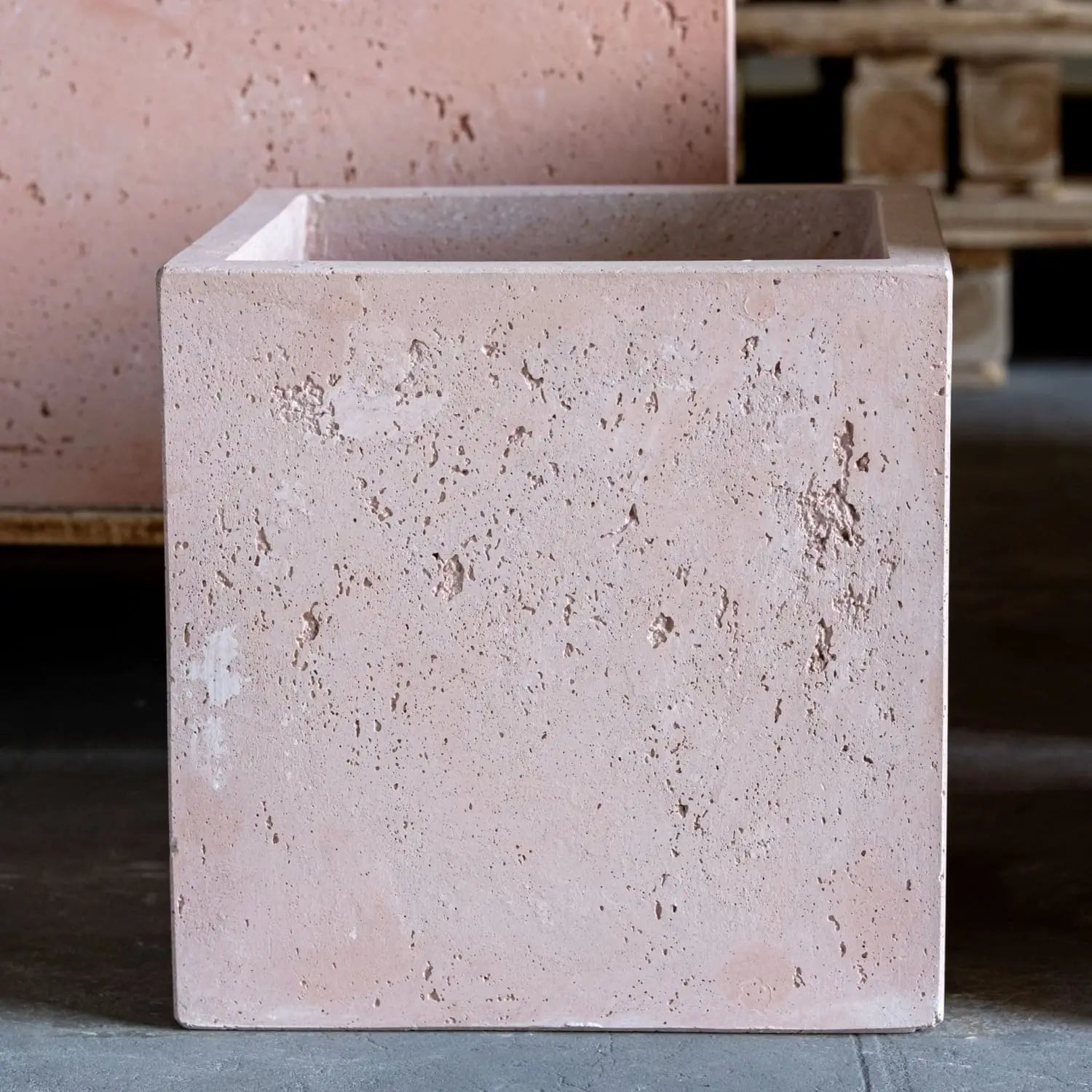 Crafted with meticulous attention to detail, each Cubrosa is hand-cast in pigmented cement stone. The artisanal finishing process reveals a textured, naturally imperfect surface that adds character and depth to the planter's appearance. The Blushstone colorway is a sophisticated blend of soft clay, warm beige, and muted pink tones, creating a versatile palette that complements a wide range of foliage and hardscaping materials.